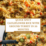 A quick and flavorful 20-minute spicy cauliflower rice recipe featuring ground turkey, vibrant spices, and fresh vegetables that make for a healthy, low-carb, and satisfying meal.
