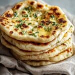 This simple 3 Ingredient Naan Bread recipe uses no yeast and comes together quickly with just flour, Greek yogurt, and baking powder. The resulting naan is soft, fluffy, and perfect for pairing with your favorite curries or dips. Ready in under 30 minutes, this no-fuss bread is cooked on the stovetop for a lightly charred, golden finish with optional butter and parsley for extra flavor.