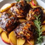 Delicious and tender apple cider chicken thighs baked to perfection with a sweet and tangy glaze made from apple cider, honey, Dijon mustard, garlic, balsamic vinegar, and fresh thyme. This easy oven-baked recipe brings a perfect balance of flavors ideal for a comforting weeknight dinner.