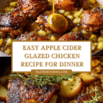This Apple Cider Glazed Chicken recipe features tender boneless chicken breasts seared to golden perfection and finished in a flavorful, sweet and tangy apple cider glaze. Enhanced with garlic, onion, thyme, and a hint of Dijon mustard, this skillet dish is perfect for a cozy weeknight dinner with a perfect balance of savory and fruity flavors.