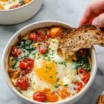 - Bake Eggs: Return the dishes to the oven and bake for an additional 10 minutes, or until the eggs are cooked to your preferred doneness.