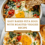 This Baked Feta Eggs recipe features a flavorful Mediterranean-style dish combining roasted cherry tomatoes, bell peppers, red onion, garlic, and creamy feta cheese, baked to perfection with fresh spinach and topped with eggs. It’s an easy, vibrant breakfast or brunch option that pairs perfectly with crusty bread.