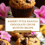 Keywords: banana muffins, chocolate chunk muffins, bakery style muffins, banana dessert, homemade muffins, quick breakfast
