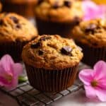 Keywords: banana muffins, chocolate chunk muffins, bakery style muffins, banana dessert, homemade muffins, quick breakfast