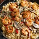 - Combine Everything: Return the cooked shrimp, sautéed mushrooms, roasted red bell peppers, and capers to the pan. Stir well and heat everything through. Season to taste with salt and pepper if needed.