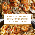 Blackened Shrimp Stroganoff is a flavorful twist on the classic comfort dish, combining spicy Cajun shrimp with a creamy mushroom sauce. Served over tender fettuccini, this recipe is perfect for a satisfying weeknight dinner that feels a little special.