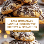 Delight in these delightful Cannoli Cookies—a soft, ricotta-infused treat bursting with mini chocolate chips and chopped pistachios. Combining the rich flavors of traditional Italian cannoli filling with a tender cookie base, these are perfect for a sweet snack or elegant dessert. Lightly dusted with powdered sugar, these cookies offer a perfect balance of creamy, crunchy, and chocolaty textures.