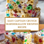 Keywords: Captain Crunch Marshmallow Krispies, Captain Crunch treats, marshmallow cereal bars, no bake treats, fruity cereal desserts