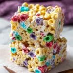 Keywords: Captain Crunch Marshmallow Krispies, Captain Crunch treats, marshmallow cereal bars, no bake treats, fruity cereal desserts