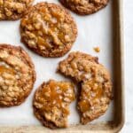 Keywords: Caramel oatmeal cookies, chewy oatmeal cookies, toffee cookies, caramel-filled cookies, salted caramel cookies, homemade cookies