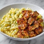 This Cheesy Alfredo Twisted Pasta with Golden Garlic Butter Chicken is a comforting dish that combines tender chicken with creamy, cheesy sauce and perfectly cooked rotini. It’s a simple yet indulgent meal that’s perfect for weeknight dinners or special occasions.
