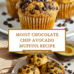 Keywords: avocado muffins, chocolate chip muffins, healthy muffins, banana avocado recipe, breakfast muffins, naturally sweetened muffins