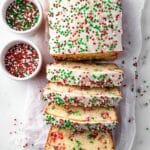 Keywords: Christmas bread, holiday bread, festive bread, sprinkles bread, buttermilk bread, quick bread, holiday baking, colorful bread
