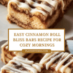 Cinnamon Roll Bliss Bars capture all the warm, sweet flavors of a classic cinnamon roll in an easy-to-make bar form. These delightful bars are perfect for breakfast, snacks, or dessert, offering a tender crumb with a cinnamon-sugar swirl and a smooth vanilla frosting.