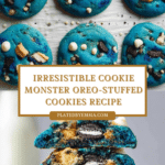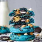 Delightfully indulgent Cookie Monster Cookies packed with a mix of dark and white chocolate chips, crushed mini cookies, and whole Oreos hidden inside for a fun surprise. These soft, chewy cookies are colored blue for a playful twist and perfect for satisfying any sweet tooth craving with their creamy centers and crunchy edges.