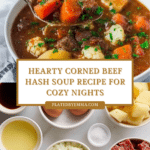 This comforting Corned Beef Hash Soup combines tender corned beef with hearty vegetables in a rich beef stock broth, thickened to a perfect consistency with cornflour. Easily made on the stovetop, it’s a satisfying and flavorful soup ideal for a cozy meal.