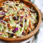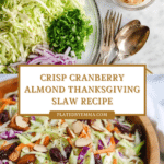 Keywords: cranberry almond slaw, thanksgiving salad, cabbage slaw, holiday side dish, crunchy slaw, apple cider dressing