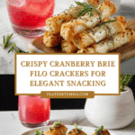 Cranberry and Brie Filo Crackers are a delightful combination of flaky pastry, creamy cheese, and tangy cranberry sauce. Perfect as an elegant appetizer or a festive snack, these bite-sized treats are easy to prepare and sure to impress your guests.