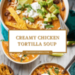 PrintCreamy Chicken Tortilla Soup with Crispy Tortilla Strips Recipe