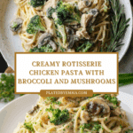 This creamy leftover rotisserie chicken pasta is a quick and comforting meal perfect for using up cooked chicken. With tender broccoli, sautéed mushrooms, and a rich parmesan cream sauce, it’s a delicious way to turn simple ingredients into a satisfying dinner.