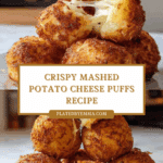 Crispy Mashed Potato Cheese Puffs combine leftover mashed potatoes with cheddar cheese and herbs, baked to golden perfection. These bite-sized snacks are crispy on the outside and creamy inside, making them a delightful appetizer or side dish.