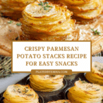Keywords: crispy potato stacks, parmesan potatoes, baked potato side dish, potato recipe, vegetarian side dish, baked parmesan potatoes