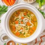 Keywords: chicken noodle soup, crockpot chicken soup, slow cooker soup, comfort food, easy chicken soup, homemade chicken soup, fusilli noodle soup, slow cooker recipes