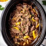 - Serve: Once done, shred or slice the roast and serve with the flavorful juices and peppers from the crockpot.