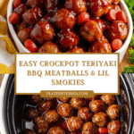 Keywords: Crockpot meatballs, Teriyaki BBQ meatballs, Lit’l Smokies, Slow cooker appetizer, BBQ meatball recipe