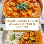 A rich and creamy Easy Paneer Butter Masala recipe featuring marinated paneer cubes simmered in a spiced tomato and cream sauce, perfect for a flavorful Indian meal served over rice.