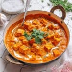 A rich and creamy Easy Paneer Butter Masala recipe featuring marinated paneer cubes simmered in a spiced tomato and cream sauce, perfect for a flavorful Indian meal served over rice.