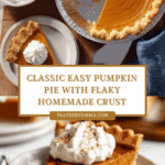This Easy Pumpkin Pie Recipe features a flaky homemade crust filled with a smooth, spiced pumpkin custard. Perfect for fall gatherings, this classic dessert balances creamy richness and warm pumpkin pie spice for a comforting finish to any meal.