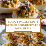Keywords: Elote deviled eggs, Mexican deviled eggs, fiesta appetizers, cotija cheese recipes, chipotle mayo deviled eggs, party appetizers, easy deviled eggs