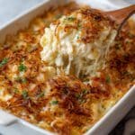 This French Onion Chicken Orzo Casserole combines the rich, caramelized flavor of slow-cooked onions with tender shredded chicken and creamy orzo pasta, all baked to golden perfection with melted mozzarella and Parmesan cheese. A comforting one-pot dish perfect for weeknight dinners.