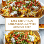 Keywords: Frito Cowboy Cabbage, Tex-Mex cabbage recipe, taco seasoned ground beef, Fritos salad, easy skillet dinner