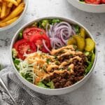 PrintFully Loaded Burger Bowl with “Special Sauce” Recipe