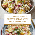 A vibrant and tangy Greek Potato Salad featuring tender petite potatoes tossed with olives, capers, sun-dried tomatoes, and a flavorful herb dressing, finished with creamy feta cheese. Perfect as a side dish served warm, at room temperature, or chilled.