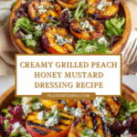 Keywords: grilled peach dressing, honey mustard dressing, fruity salad dressing, grilled fruit dressing, peach honey mustard vinaigrette