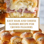 Keywords: ham and cheese sliders, party appetizers, easy sliders, baked sliders, Swiss cheese ham sandwiches