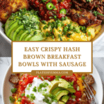Hash Brown Breakfast Bowls are a delicious and satisfying way to start your day. Crispy hash browns, savory sausage, fluffy scrambled eggs, and fresh toppings come together in this hearty breakfast bowl. It’s easy to make and perfect for busy mornings or weekend brunch.