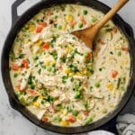 This Healthy Crustless Chicken Pot Pie offers all the comforting flavors of a classic chicken pot pie without the crust. Featuring tender shredded chicken, a medley of mixed vegetables, and a creamy herb-infused sauce, this skillet dish is both nutritious and satisfying. It’s a perfect one-pan meal suitable for a wholesome family dinner, combining ease of preparation with delicious taste.