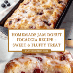 This Homemade Jam Donut Focaccia combines the fluffy, airy texture of classic Italian focaccia with the sweet decadence of raspberry jam and a sugary glaze. Perfectly golden and dotted with pockets of melted jam, this unique treat offers a delightful twist on traditional focaccia, making it an irresistible sweet bread ideal for breakfast, dessert, or a special snack.