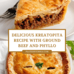 Keywords: kreatopita, Greek meat pie, phyllo pie, ground beef pie, savory pie, Greek cuisine