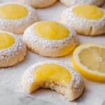 - Finish and Serve: Lightly dust the cooled cookies with powdered sugar if desired. Fill each cookie indent with about 2 teaspoons of chilled homemade lemon curd. Enjoy immediately or store in the fridge for up to five days.