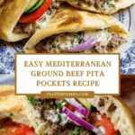 A flavorful and easy-to-make Mediterranean Ground Beef Pita Pockets recipe featuring spiced ground beef, fresh vegetables, and creamy tzatziki sauce, perfect for a quick and satisfying meal.