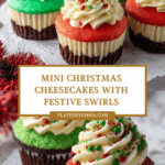 Keywords: Mini Christmas Cheesecake, Festive Dessert, Oreo Crust Cheesecake, Holiday Treats, Marbled Cheesecake
