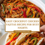 This Mouthwatering Crockpot Chicken Fajitas recipe features tender, slow-cooked chicken breasts infused with vibrant bell peppers, onions, and salsa. Cooked low and slow in a crockpot, the fajitas deliver a perfect balance of tangy, spicy, and savory flavors, making them an easy, hands-off meal ideal for busy days. With simple seasoning and fresh lime juice added at the end, these fajitas maintain juicy texture and bold taste, perfect for serving with tortillas or over rice.
