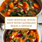 Mystical Witch Soup is a cozy, hearty, and flavorful vegetable and bean soup perfect for chilly nights. Combining aromatic sautéed vegetables, cannellini beans, and spinach simmered with herbs in a savory vegetable broth, this comforting soup is easy to prepare and nourishing. It’s ideal for those seeking a warm, soul-satisfying meal that’s both simple and magical.