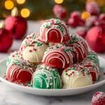These No-Bake Christmas Cheesecake Bites are a festive and easy treat perfect for the holiday season. Creamy, sweet, and coated in colorful chocolate, they are sure to delight family and friends without turning on the oven.