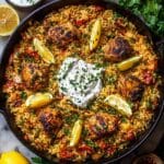A flavorful and aromatic one-pot chicken shawarma rice dish featuring tender marinated chicken thighs cooked with fragrant basmati rice and traditional Middle Eastern spices. This easy recipe brings all the vibrant flavors of shawarma in a convenient, comforting meal perfect for any weeknight dinner.
